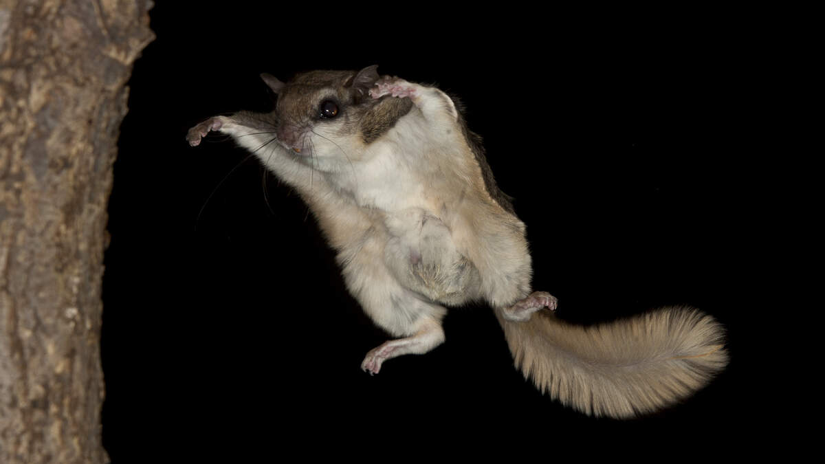 A doorbell cam filmed a pizza delivery getting interrupted by a flying squirrel. The squirrel is perched on a wall behind the delivery guy. When someone opens the front door, the squirrel leaps through the air, and into the house.